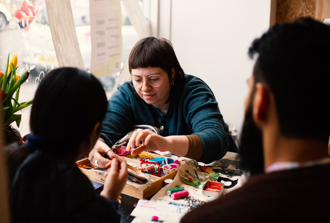 Bring the joy of mindful hand mending to your workplace or event. Slow Stitch Studio is available for one off or block bookings.